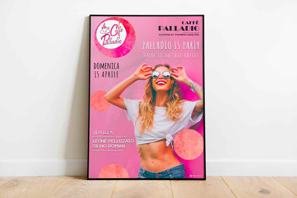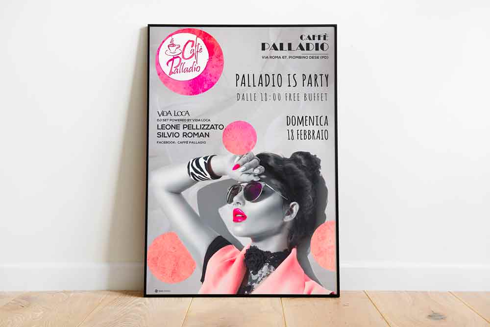 Ideazione e Comunicazione della campagna pubblicitaria Palladio Is Party riguardante i social network come Facebook e Instagram, stampa di flyer e manifesti .